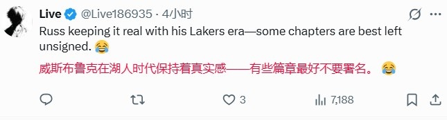 威少拒签湖人球衣?美网友:有些篇章最好别署名 他真的无法接受