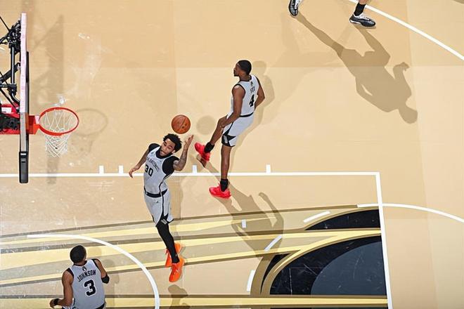 本场比赛中,马刺的替补锋线大将朱利安·尚帕尼(Julian Champagnie)虽然没有找到自己的手感,但是他在防守端的作用还是相当突出的。尚帕尼全场出场26分34秒,投篮5中1,三分线外5中1,得到了3分8篮板2助攻1盖帽的数据,还有1次失误和1次犯规,正负值为-3。尚帕尼在进攻端确实是手感一般,他的得分能力和投射能力都完全没有发挥出来,他也没有在这方面起到任何的效果,这也并不是他应有的水准。不过尚帕尼在防守端的表现非常突出,他的防守积极性和活力都是肉眼可见的,并且也是起到了很好的防守效果的。除此之外,尚帕尼在篮板争抢方面的表现同样是值得肯定的。尚帕尼虽然不在自己的最佳状态,但是他还是为球队的胜利做出了不小的贡献。