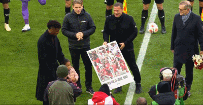 北京时间11月29日,拜仁在主场对阵圣保利。赛前科曼回归安联球场,拜仁为他举办了告别仪式。